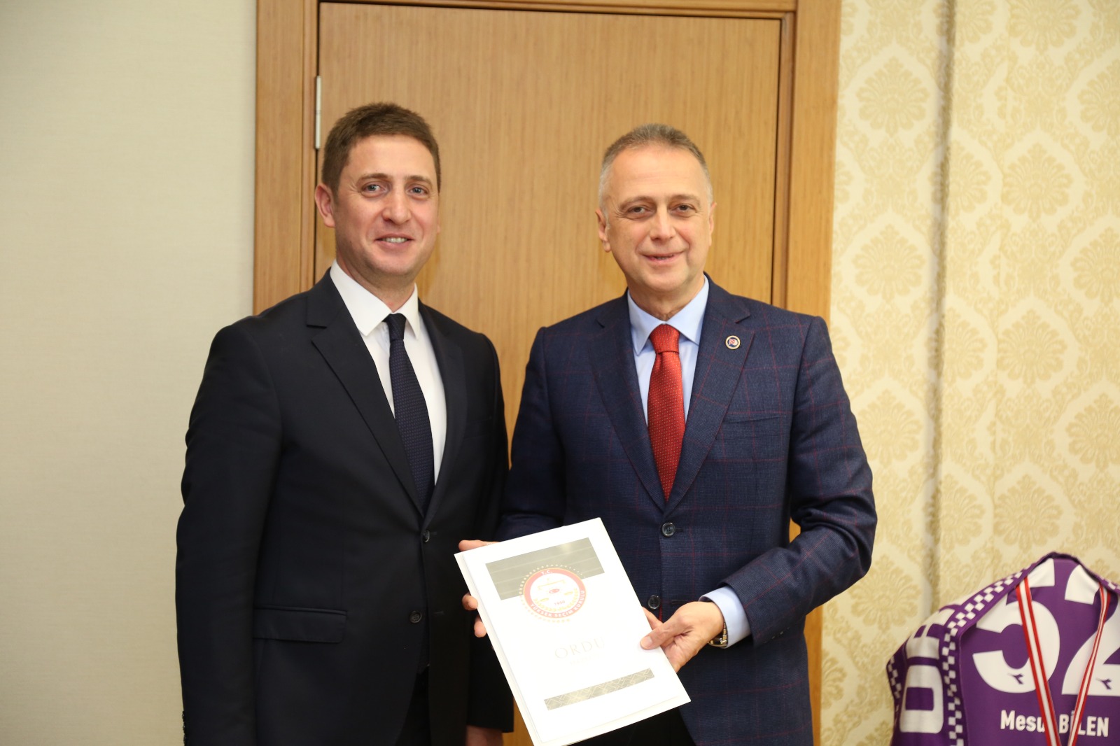 Ordu Ticaret ve Sanayi Odası organ seçimlerinin ardından Yönetim Kurulu Başkanlığı görevine getirilen Adil Levent Karlıbel, Altınordu İlçe Seçim Kurulu Başkanı Mesut Bilen’den mazbatasını aldı.